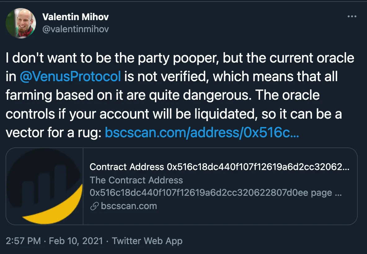 In extension, then, BSC’s dapp ecosystem inherits the main vulnerabilities that we’ve seen around Ethereum DeFi to date, namely risks of impermanent loss (IL), smart contract flaws, oracle flaws, and so forth.