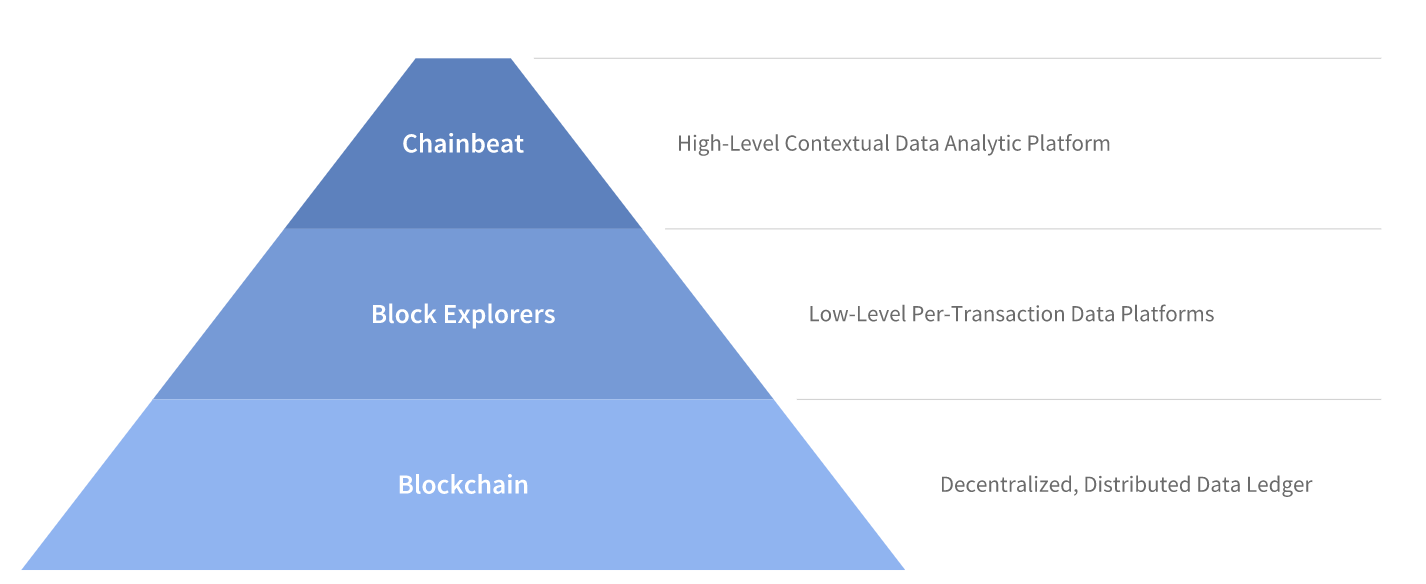 Our second goal is to empower everyone to do more with actionable and functional data. Block Explorers provide transactional level information without any context. Chainbeat will bridge this gap by providing high-level contextual information that directly translates how, why, and when decentralized apps and protocols gets used.