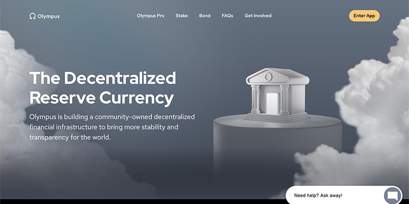 Olympus is a decentralized reserve currency protocol based on the OHM token. Each OHM token is backed by a basket of assets in the Olympus treasury, giving it an intrinsic value that it cannot fall below.
