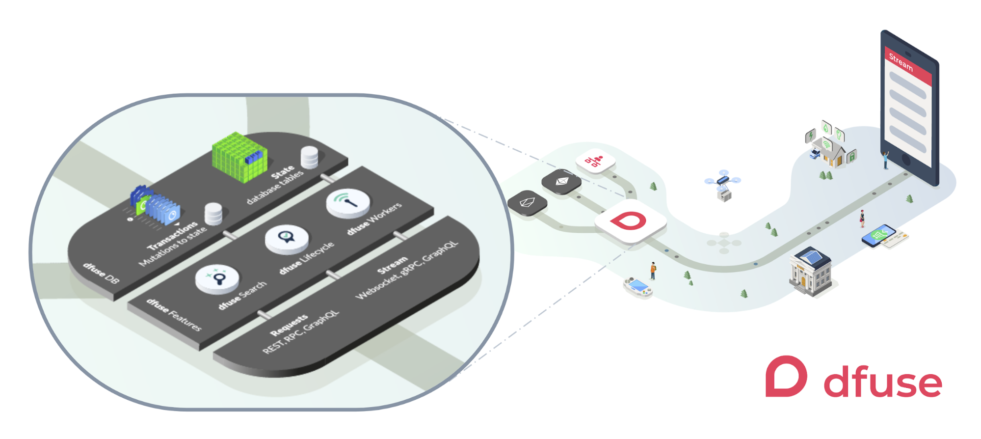 dfuse is a platform to empower dapp developers with capabilities to build modern blockchain applications with fast, fluid interfaces that deliver exceptional user experiences. Powered by a low-latency architecture, its robust APIs make it possible to stream real-time state updates, conduct lightning-fast searches and provide transaction guarantees all for the first time, using simple API calls.