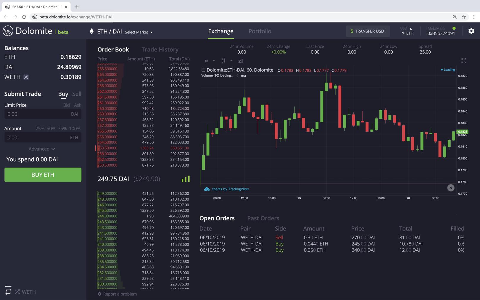 As traders, we found it a pain to keep open multiple tabs with token information, price charts, and 3rd party portfolio tracking applications. We wanted to bring that all together into one place. That’s why Dolomite comes with a built-in portfolio tracker, completely free and open to use. By connecting your Ethereum wallet or simply entering your public address, we generate a portfolio overview for you with a graph of past portfolio value, wallet transactions with cost basis, trade history with a breakdown of your gain/loss, and information on thousands of tokens.