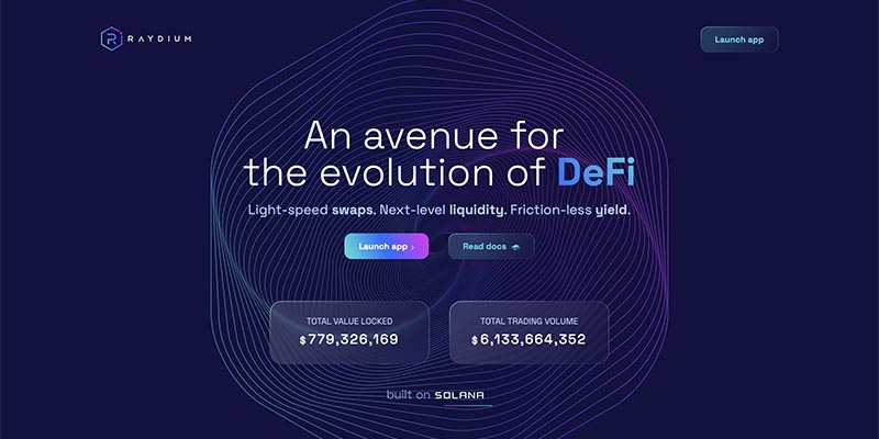Raydium is an automated market maker (AMM) built on the Solana blockchain which leverages the central order book of the Serum decentralized exchange (DEX) to enable lightning-fast trades, shared liquidity and new features for earning yield