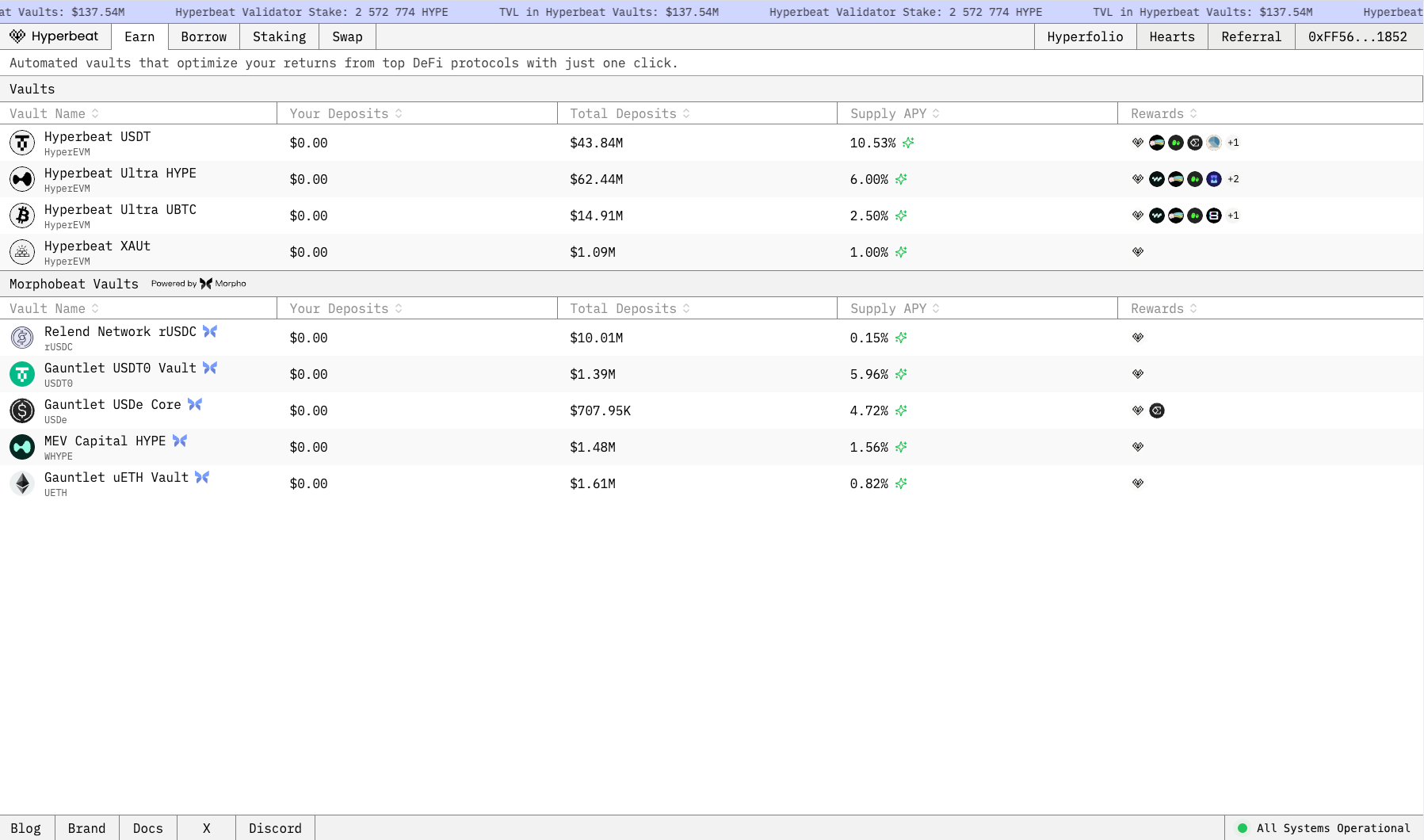 - Overview: Hyperbeat is a decentralized lending and borrowing protocol on Hyperliquid’s HyperEVM, launched in early 2025, designed to enhance capital efficiency for traders and liquidity providers. It allows users to lend assets like $HYPE, $KITTEN, and stablecoins to earn interest or borrow against collateral to participate in Hyperliquid’s spot and perpetual futures markets. Hyperbeat integrates with Hyperliquid’s native order books, enabling seamless interaction between lending pools and trading activities. The protocol offers dynamic interest rates based on market demand and supports overcollateralized loans to ensure stability. With a focus on user-friendly interfaces and low-latency transactions, Hyperbeat has attracted significant attention, boasting $20 million in TVL within its first month. Its points-based reward system incentivizes early adopters, with plans for a native token launch to further align community interests.