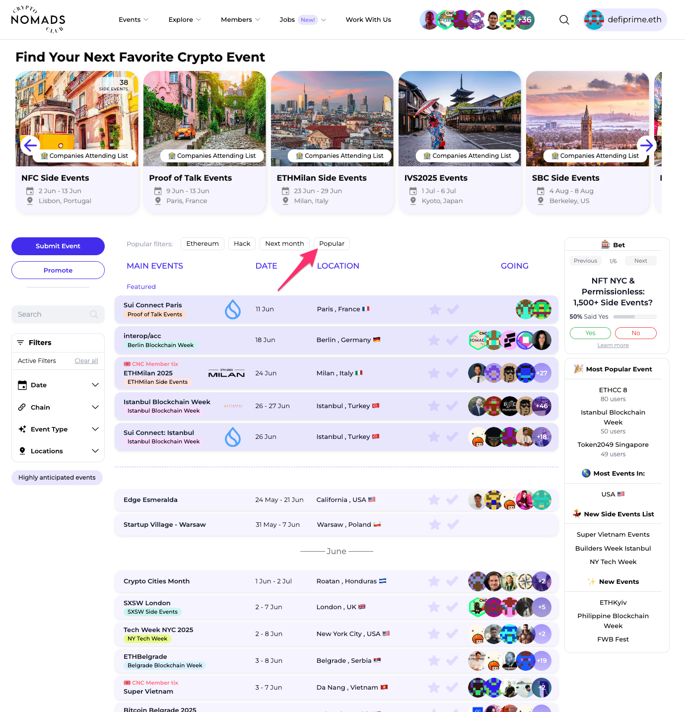 Your best friend is the cryptonomads.org/ website, which covers all conferences and side events in the crypto world. This platform is invaluable for staying updated on the latest happenings in the crypto sphere. It offers a comprehensive list of events, ranging from large-scale conferences to smaller, more intimate side events. By regularly checking this site, you ensure you’re always in the loop about potential networking opportunities.