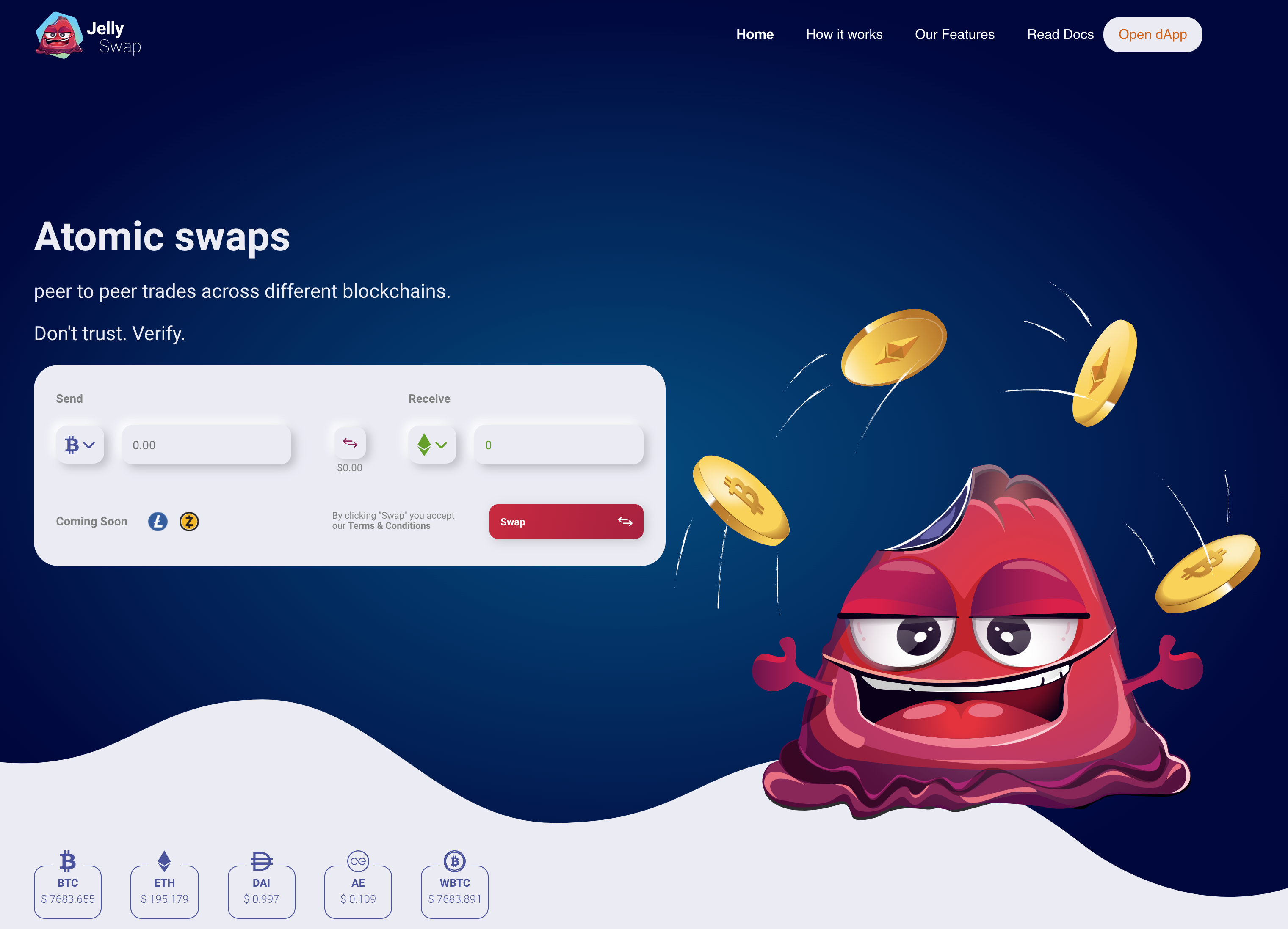 We’ve been in this space since the beginning of 2017. We’ve built many dApps and a complex DEX application based on Ethereum. I would say that all these years were part of the preparation for JellySwap protocol and this multichain, multi smart contract cutting edge challenge. We started working heavily on JellySwap in the beginning of 2019 after long hours of discussing, brainstorming and evaluating . We have designed a proof of concept application with limited functionalities, minimalistic UI and basic version of HTLC on Ethereum. After that we’ve developed HTLC contracts for ERC20s, Bitcoin, Aeternity and Tron. We’ve done hundreds of iterations on the smart contracts, UI and UX until we released our public testnet version in November 2019. Many real users, together with our team, have been testing the application for two months. At the end of January 2020, we’ve released the official version on the mainnet. We have passed security audits on our Ethereum HTLC contract, and generally, we have spent more than a year until our mainnet release.
