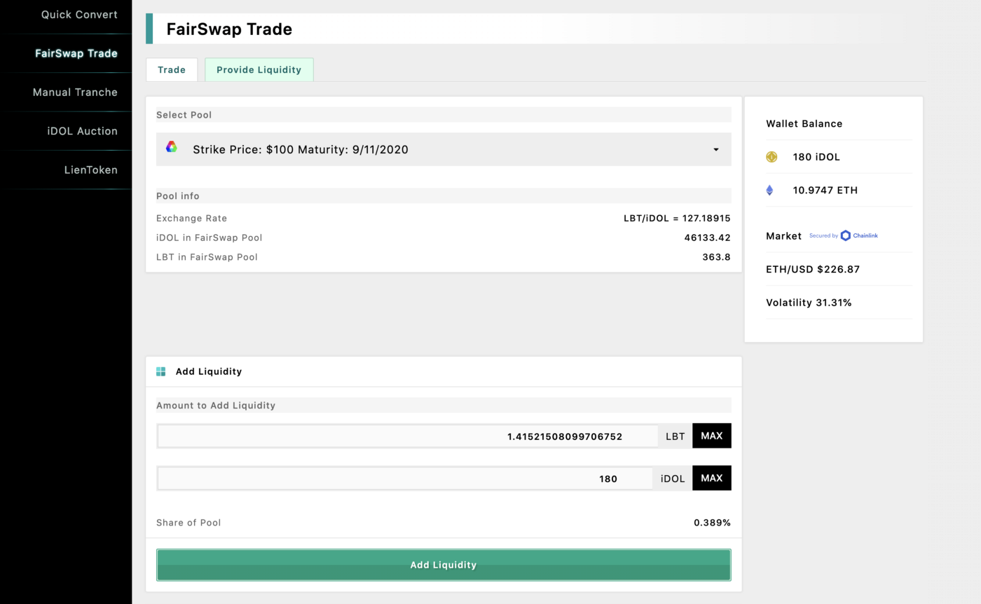 Our intention is to generate enough funds to maintain the Lien Platform through the issuance of Lien tokens. The Lien token is a utility token that the holders can use to receive discounts on the transaction fees that are required when transacting on the Lien Platform. The Lien Protocol charges a fee when users mint iDOL, our stablecoin, and when users exchange assets using Lien FairSwap. Fees are collected in ETH or iDOL and are then distributed to holders of the Lien token as discounts/rebates at the end of each month. Early users can purchase Lien tokens using Lien FairSwap.