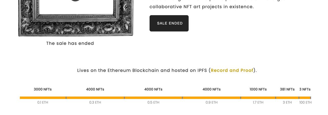 - The initial public offering of Hashmask collectibles sold out in short order. Because of the project’s minting curve, the final three NFTs were purchased for 100 ETH each.