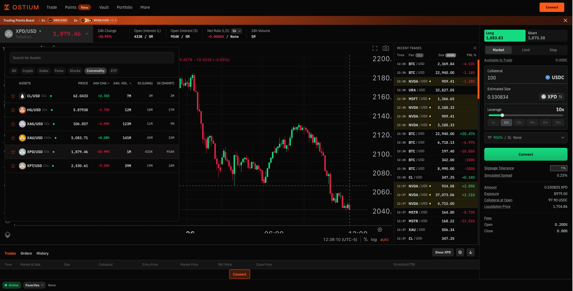 The only platform to trade Platinum and Palladium onchain at the time is Ostium Labs.